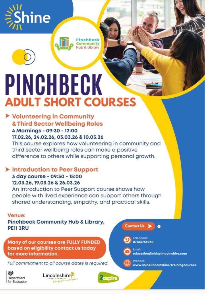Community Training at The Hub New Year New Skills Community Training Sessions To book a place on a course please contact cllr.johnsmith@pinchbeck-pc.gov.uk Please check this page regularly as new sessions will be added Pinchbeck Adult Short Courses